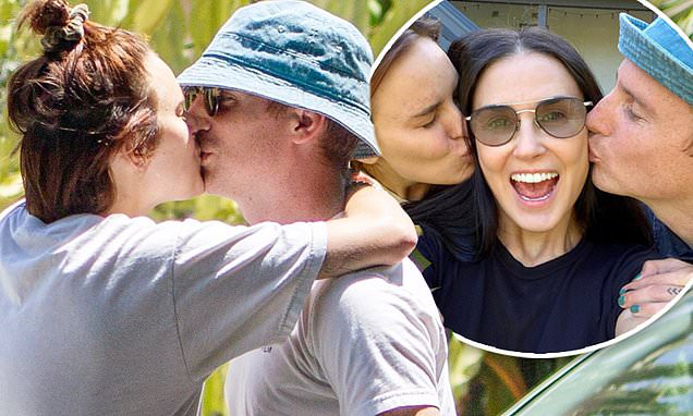 Demi beamed while Tallulah, 27, and Dillon leaned in to give her a smooch on each cheek. 'Congrats to my baby girl and her adorable beloved on their engagement!' wrote the star, 58.